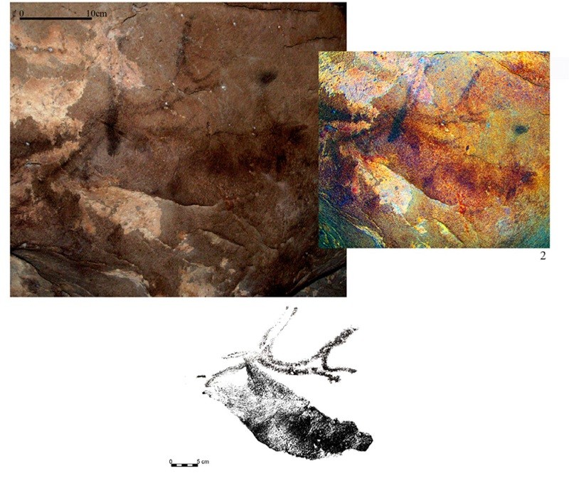 The deer from Gorham's Cave painted in black, next to digital enhancements.