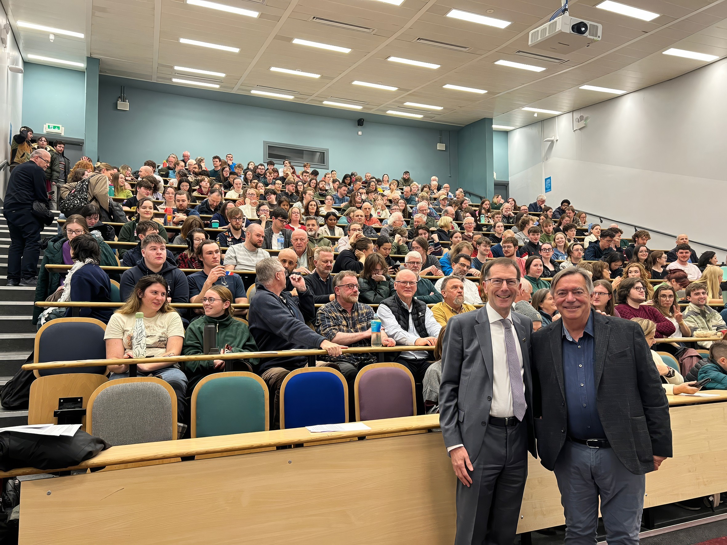 The lecture was delivered to a full house composed of professors, lecturers, students and members of the general public. At the end of the lecture, the students presented Professor Finlayson with a glass tankard from the University.